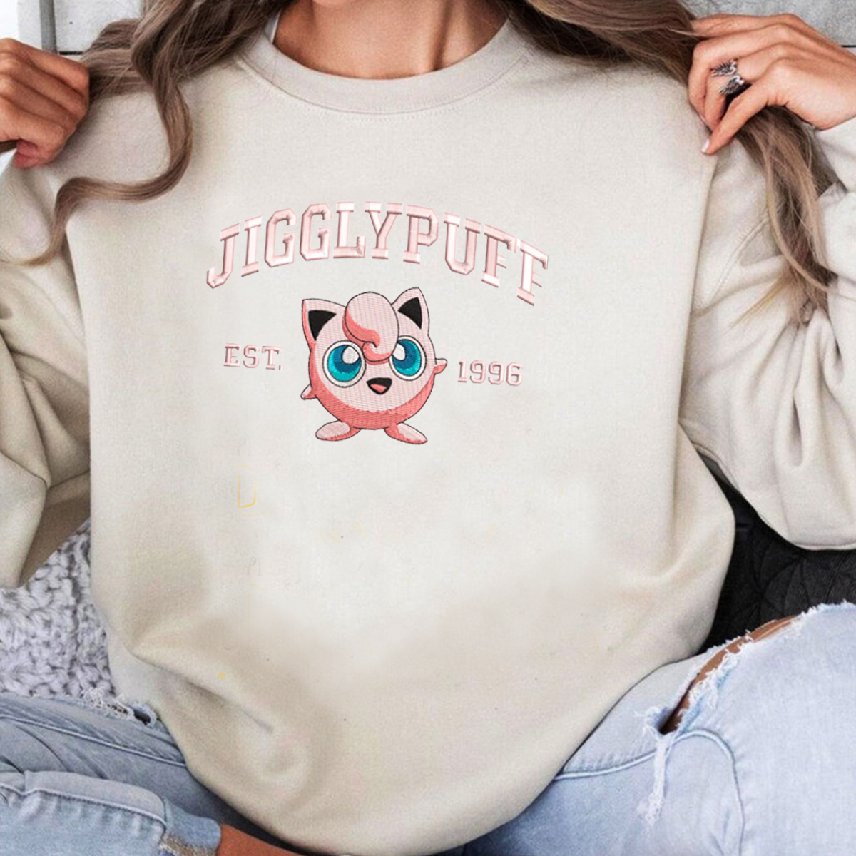 Jigglypuff Adorable Pokémon Anime-Themed Embroidered T-Shirt,Crewneck,Hoodie-Trendy Versatile and a Thoughtful Gift for Friends,ICE-722